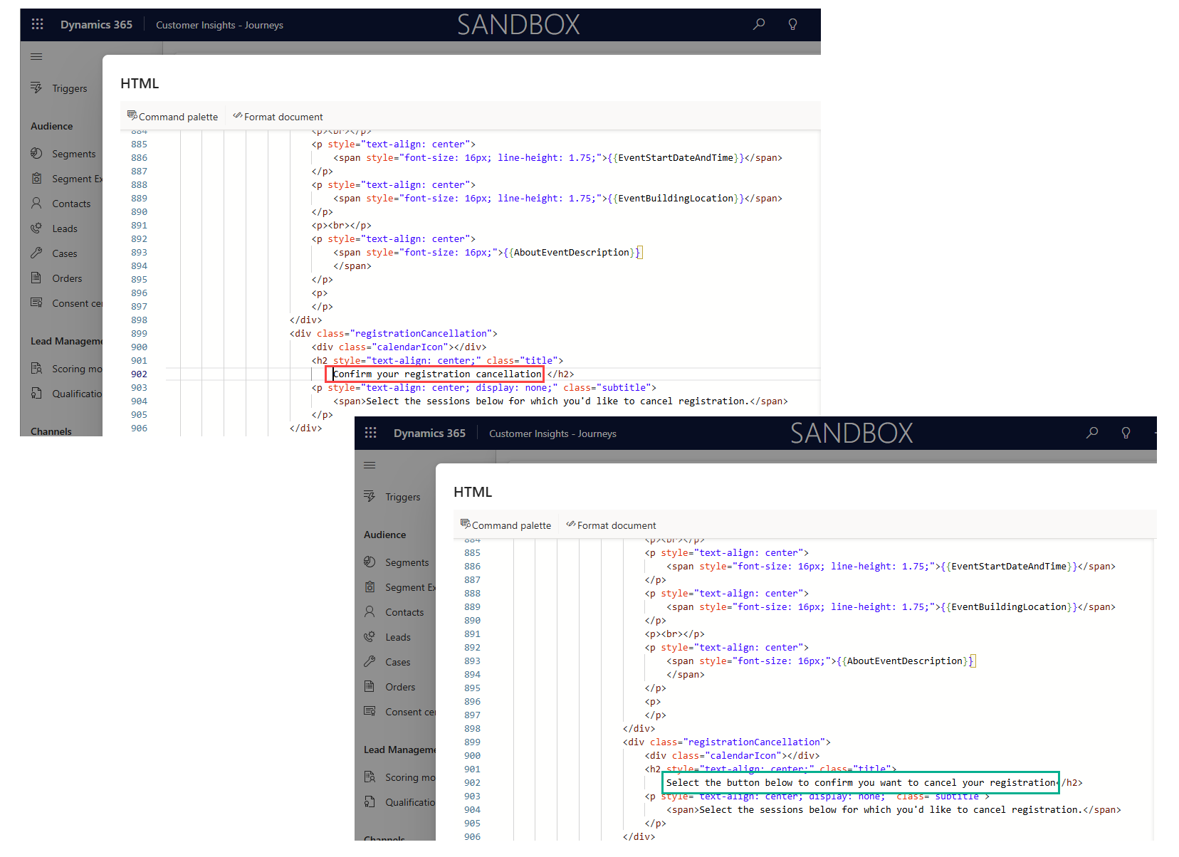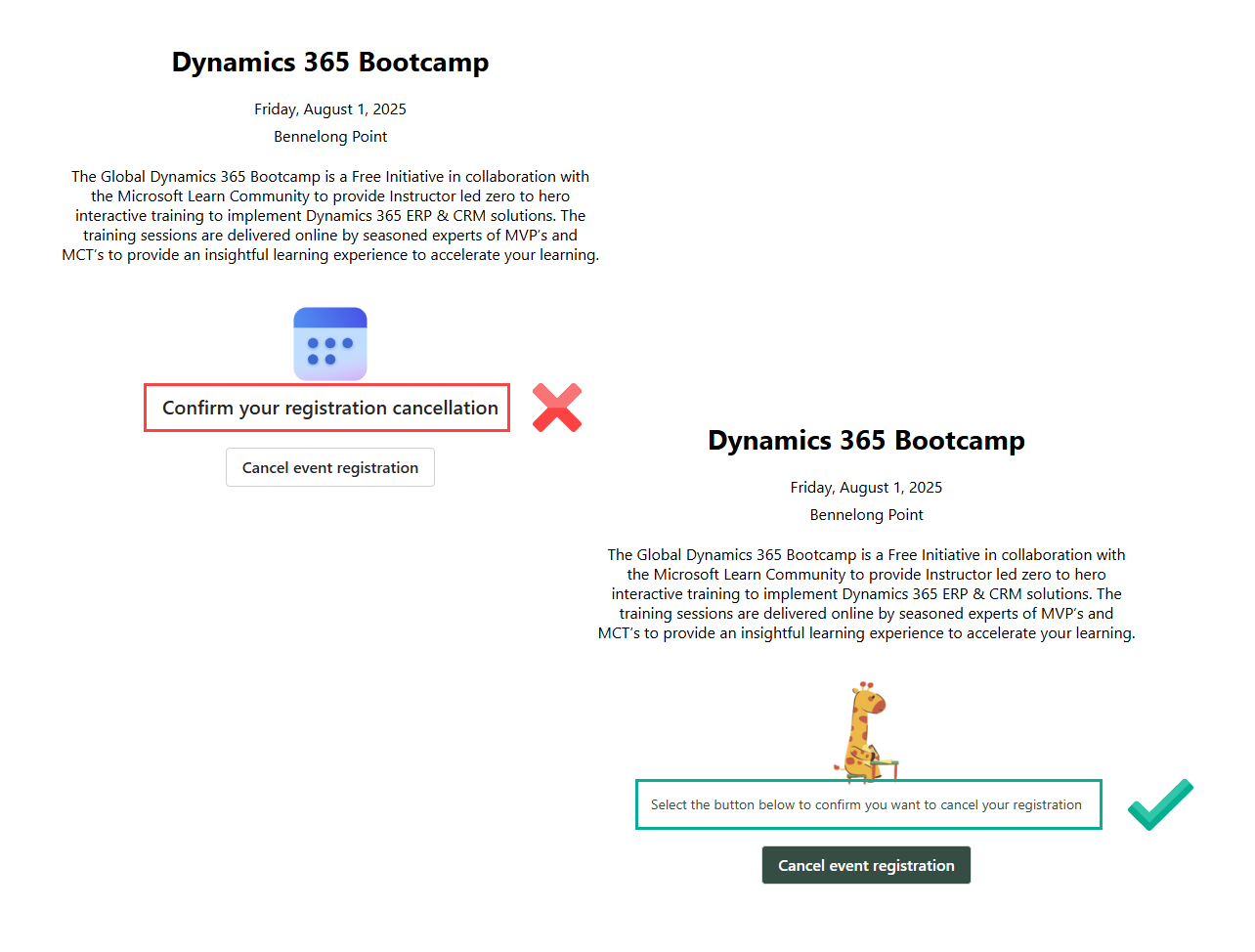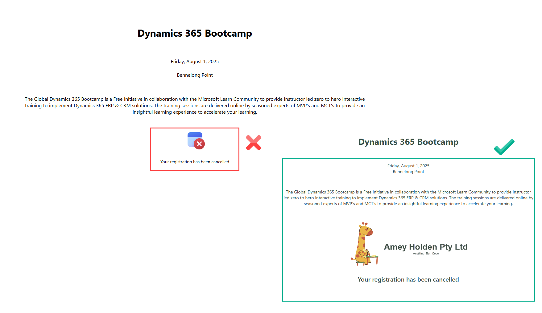 We now have the much awaited ‘Event registration cancellation’ which means organizers and attendees cancel event registrations. You can find out a bit more information in the Microsoft Docs and also a blag post from Malin Martines on how it work/how to set it up. This post will give you a little collection of tips and HTML/CSS tweaks to customise and style the Cancellation Form in Customer Insights - Journeys to make it look a little bit more professional. It’s all easy CopyPasta™ so no coding knowledge is required!