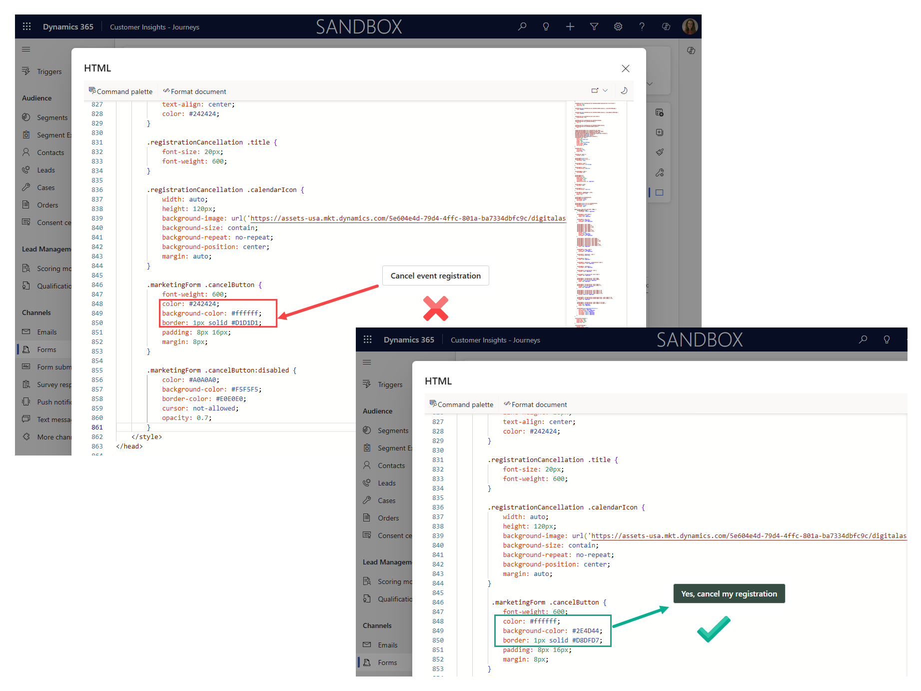 Event Registration Cancellation Form Styling in Customer Insights - Journeys