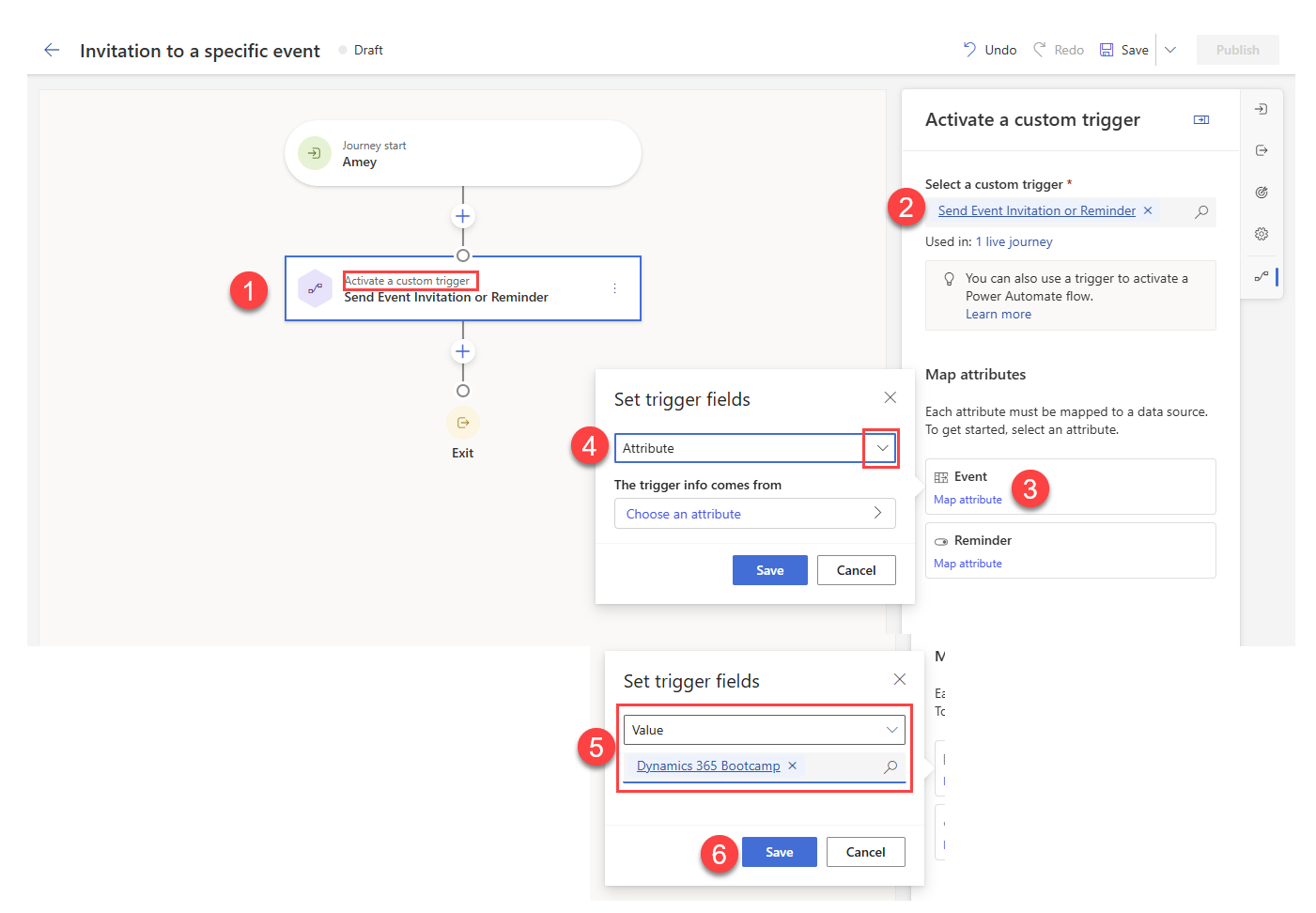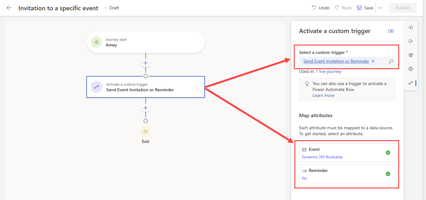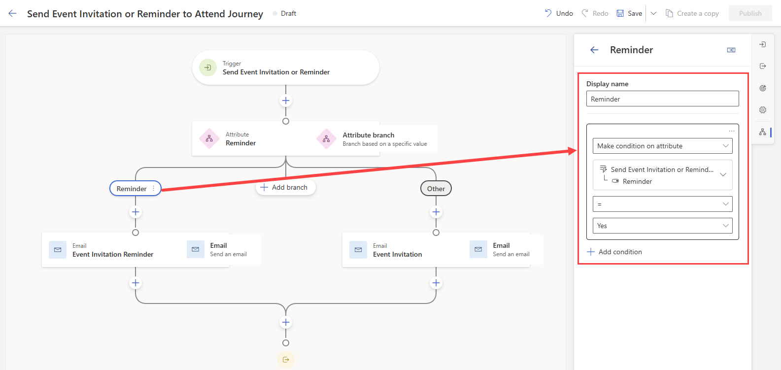 Set up the journey to send invitations or reminders, based on trigger inputs