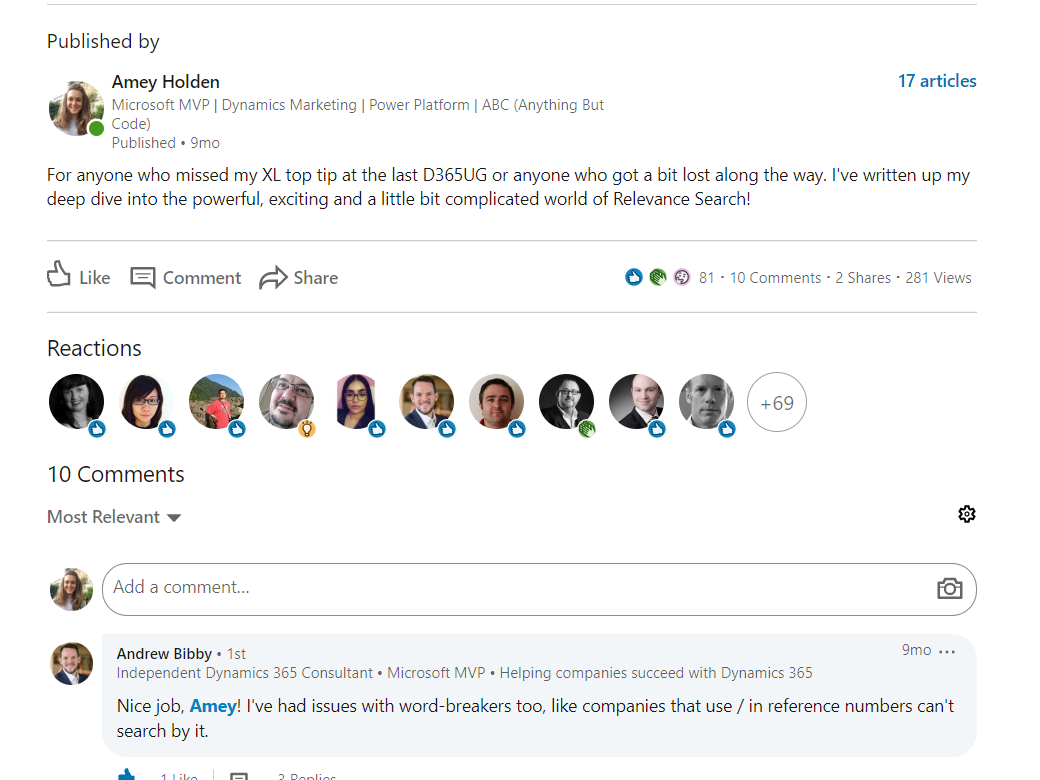 Until one day when studying for a Dynamics exam I got lost down the rabbit hole of understanding ‘Relevance Search’. With the help of Dr Google, experimenting and community documentation I made myself an expert and this was my first proper article.