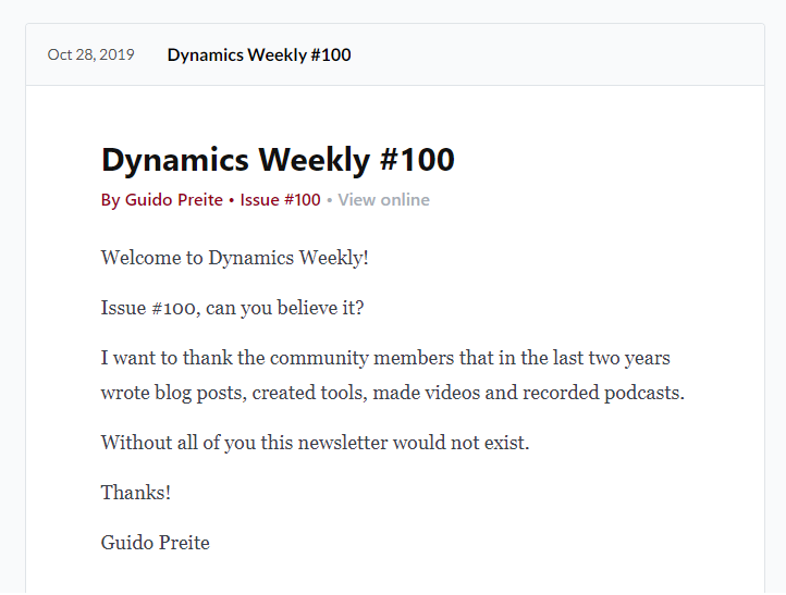 Your weekly dose of Dynamics 365 Customer Engagement and the Power Platform article/videos etc. straight to your inbox - its a must!